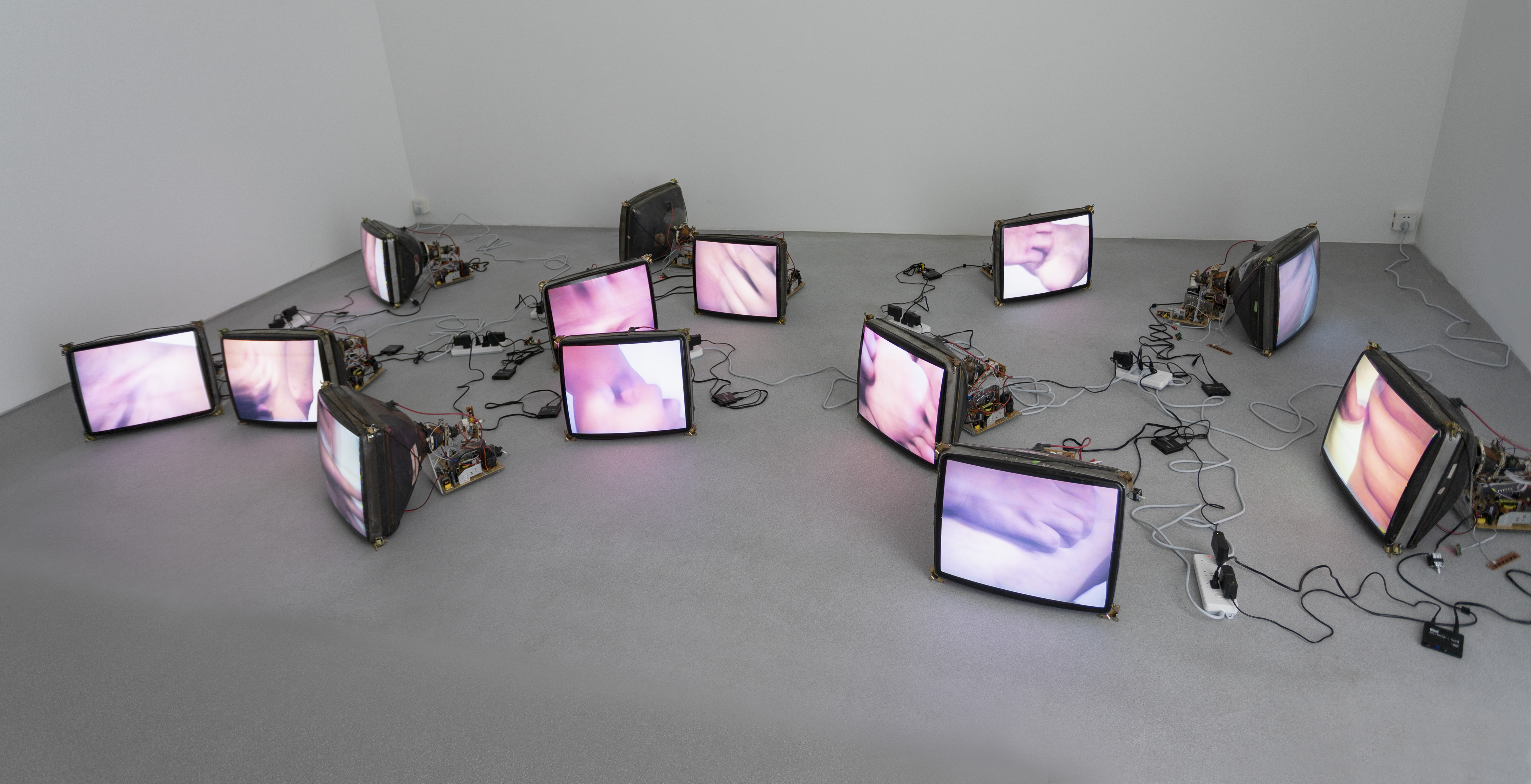 Zhang Peili est l’un des premiers artistes à faire un usage expérimental de la vidéo en Chine. Dans ses vidéos, il met en scène des actions banales et répétitives pour dénoncer l’absurdité des normes sociales. Uncertain Pleasure II présente sur dix moniteurs des images en gros plan de mains en train de gratter méthodiquement différentes parties du corps. Cette action qui soulage provoque ici un certain inconfort chez le spectateur, voyeur malgré lui de ce geste intime. « What I am interested in is the public experience of the action scratching an itch. » écrit l’artiste.